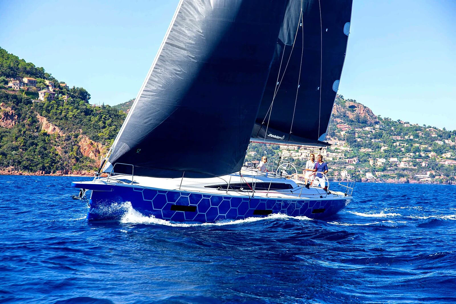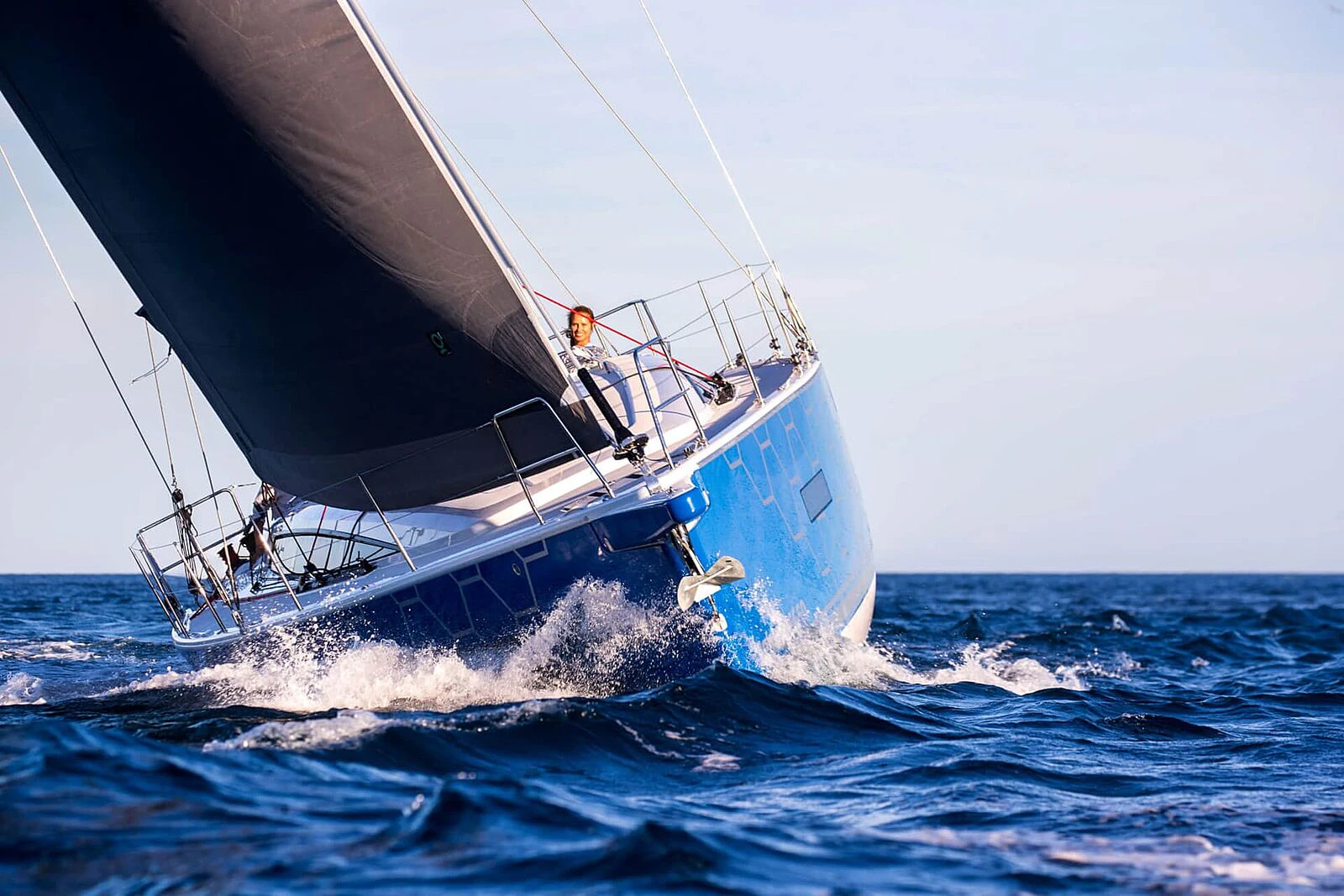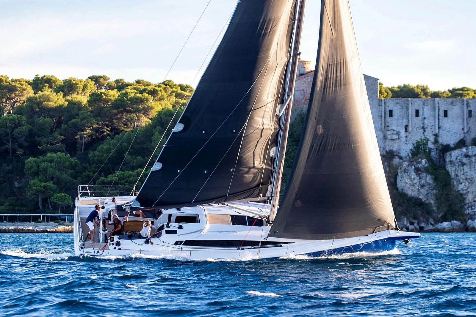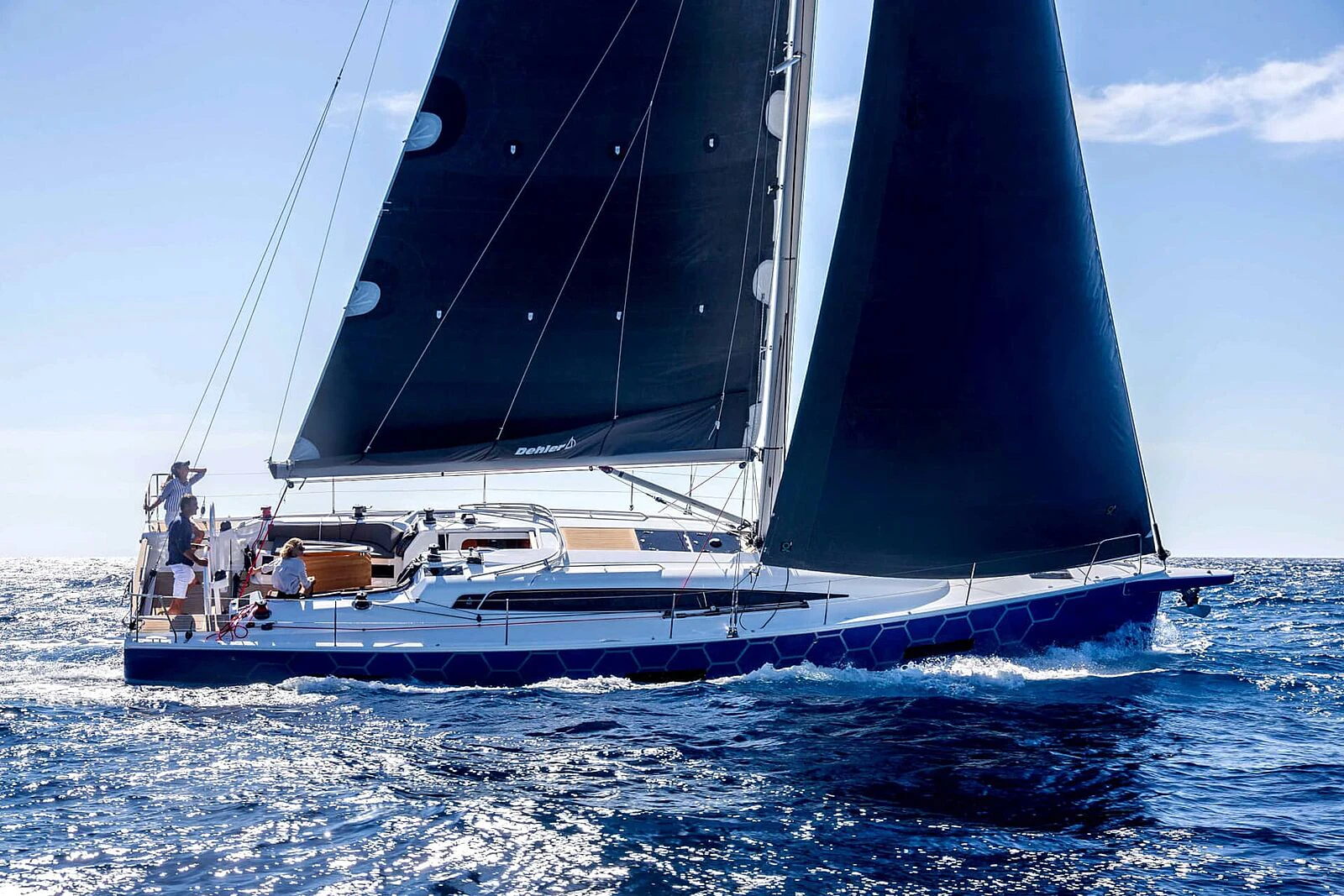 3.) Single-/doublehander friendly. Clean line runs, flat-deck furler, fold-up footrests and cockpit ergonomics reduce workload—exactly what shorthanded crews want.