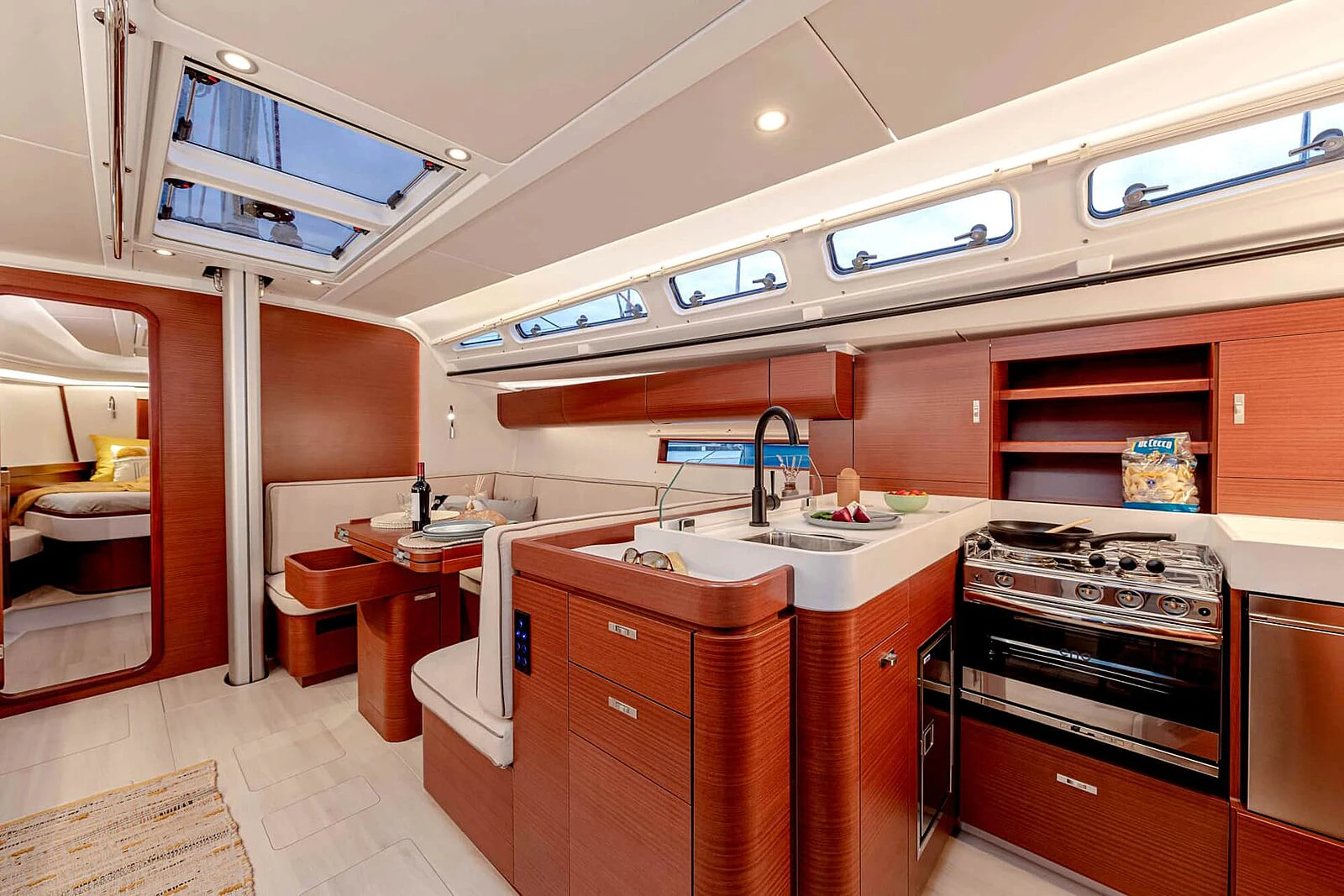 Brighter interior. Larger hull windows and additional coachroof openings, new lighting concepts, and layout tweaks yield a lighter, airier saloon.