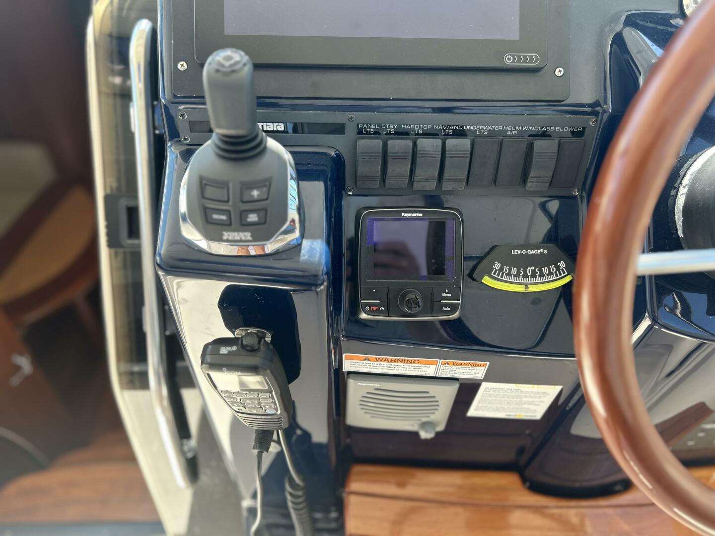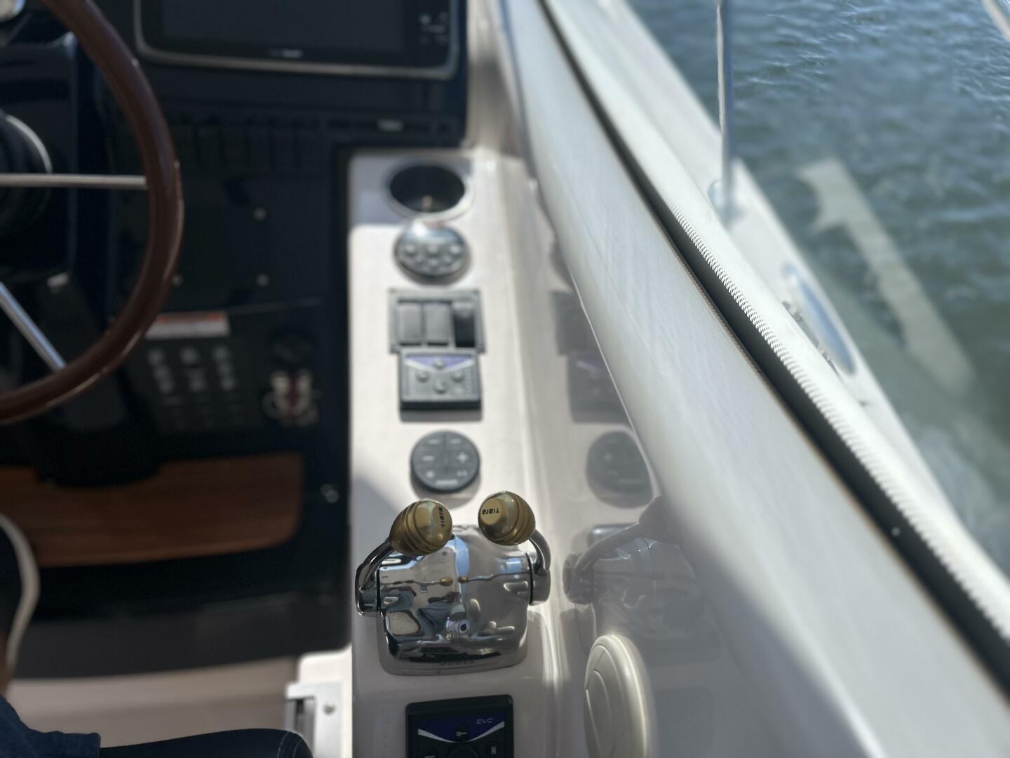 - Tiara helm console with mahogany steering wheel & electric powered captains seat