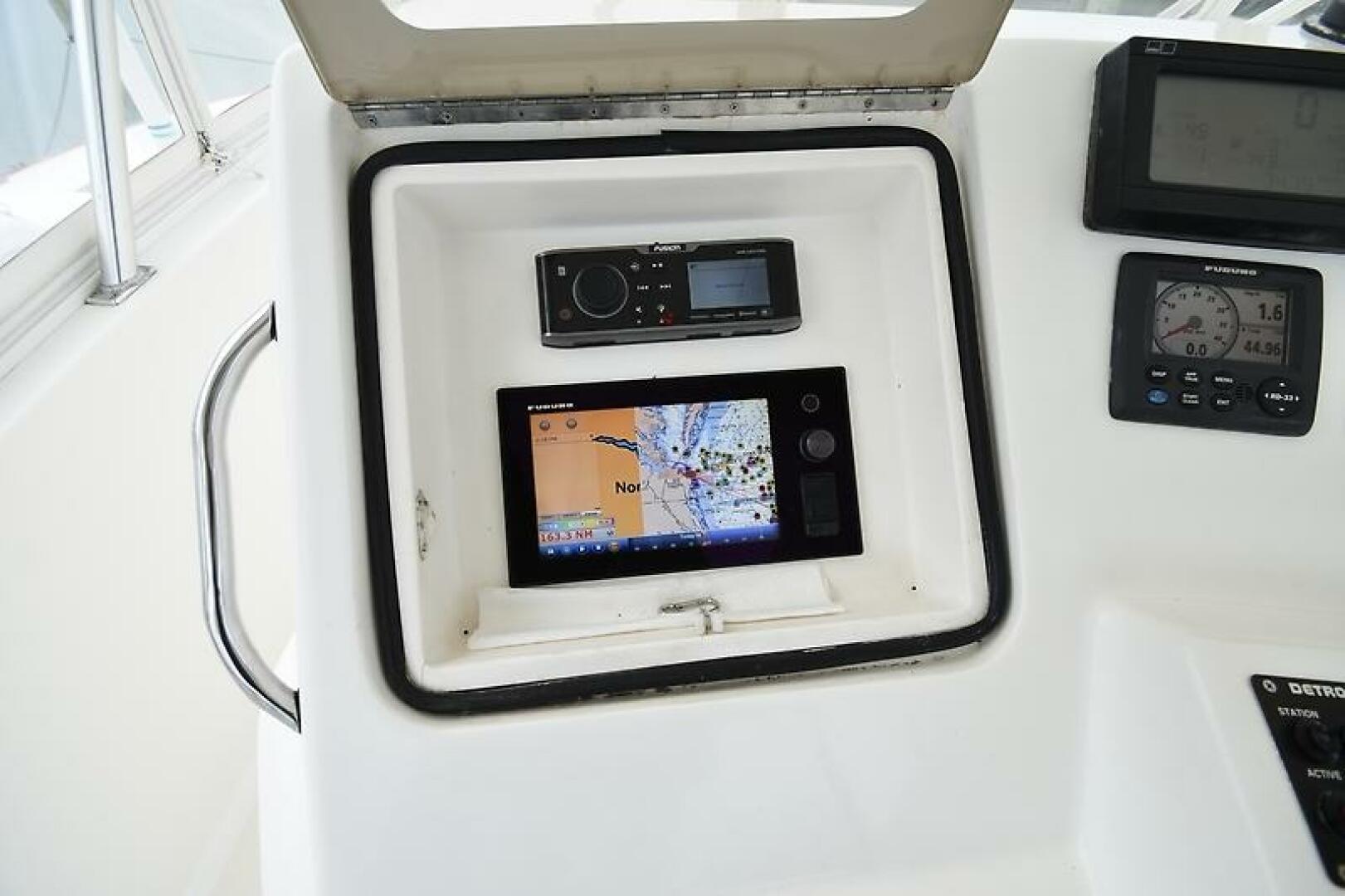 - Large Console with flush mounted Electronics Compartments, complete with clear acrylic lids (Small Compartment to Port, Steering and Controls in Center, Large Compartment to Stbd)