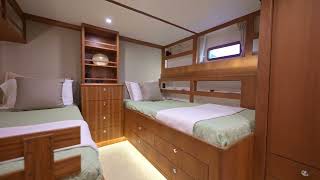 She comfortably sleeps 6 in 3 owner and guest cabins, all with en suite heads. In addition to 2 crew cabins and a shared head located forward. Not to forget the abundant storage, full laundry area, luxurious carpet and heavy duty luxury laminate flooring, throughout.